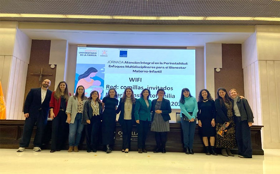 El pasado 12 de marzo se celebró la primera Jornada de Atención Integral en la Perinatalidad, organizada por el Instituto Universitario de la Familia de la Universidad Pontificia de Comillas. El encuentro, con el nombre “Enfoques multidisciplinares para el bienestar Materno-Infantil” forma parte del proyecto de investigación “Bienestar psicológico en la etapa perinatal y calidad del vínculo madre-bebé”, iniciado en septiembre de 2022. La Jornada tuvo el honor de ocupar el Aula Magna de la sede de ICADE, con más de 200 personas que asistieron al evento. Patrocinada por la Fundación Alicia Koplowitz, esta Jornada tuvo el objetivo de crear un espacio de encuentro para hablar del panorama en la atención a la etapa perinatal y los actuales desafíos. El encuentro se caracterizó por la multidisciplinariedad de los ponentes, contando con investigadoras y profesionales del ámbito de la psicología, neurociencia, obstetricia, ginecología, enfermería y trabajo social. Acompañada por Ángela Ulloa, directora de programas de la Fundación Alicia Koplowitz, la Jornada fue inaugurada por la directora del Instituto Universitario de la Familia, Ana Berástegui Pedro-Viejo. Berástegui enfatizó la importancia de cuidar los momentos más tempranos de la vida para el futuro desarrollo del niño y la formación de vínculos sólidos y saludables. Desde el Instituto Universitario de la Familia trabajan en la investigación para transferir conocimiento científico y prácticas que ayuden a mejorar el bienestar de las familias, y su directora apuntó que, en la etapa perinatal, convergen múltiples disciplinas, por lo que es crucial tener una mirada amplia. A continuación, tuvo lugar la ponencia inaugural presentada por la profesora Emma Motrico Martínez, de la Universidad de Sevilla, quien reflexionó acerca de la importancia de la prevención de los problemas de salud mental perinatal. Señaló esta cuestión como un problema de salud pública, ya que una de cada cinco madres, y uno de cada diez padres (o parejas), sufren problemas de salud mental perinatal, siendo la depresión y la ansiedad los trastornos más prevalentes, incluso por encima de otros problemas físicos. Presentó el proyecto e-Perinatal y apeló a la necesidad realizar investigaciones rigurosas y de calidad, para obtener beneficios a largo plazo en nuestra sociedad: “No se tiene que hacer ya, si no que se tiene que hacer bien”. En la primera mesa redonda, Cristina Ballesteros Sánchez, investigadora del grupo Neuromaternal del Instituto de Investigación Sanitaria Gregorio Marañón, habló de los cambios cerebrales de la mujer durante el embarazo, y cómo la maternidad supone también un cambio de identidad. María Vega Sanz, investigadora del Instituto Universitario de la Familia, presentó su ponencia titulada “Factores implicados en las dificultades del vínculo madre-hijo a los 18 meses de vida”. En su presentación, destacó algunas variables que afectan a la vinculación con el bebé, como la depresión perinatal y postparto, y señaló que “en consulta no atendemos solo a un paciente, sino a tres: la madre, el bebé y el vínculo entre ambos. Por ello, cuidar el vínculo entre madre-bebé, es cuidar al adulto de mañana”. La investigadora de la Facultad de Ciencias Humanas y Sociales de la Universidad Pontificia Comillas, Rocío Rodríguez Rey, presentó el proyecto europeo RiseInFamily, en el que colabora la universidad. Este proyecto, puesto en marcha en el Hospital Universitario La Paz de Madrid, así como en otras unidades neonatales de Europa, Asia, Norte América y África, trata de entender el impacto que tiene el ingreso de un bebé en la Unidad de Cuidados Intensivos Neonatales (UCIN) y busca la integración de la familia en estos cuidados para promover un servicio más humanizado. También se habló de Violencia Obstétrica de la mano de Amaia Halty Barrutieta, profesora de la Facultad de Ciencias Sociales de Universidad Pontificia de Comillas e investigadora del Instituto Universitario de la Familia. La profesora Halty apunta que se trata de una experiencia silenciada, normalizada y sistémica, que conlleva graves consecuencias físicas y psicológicas, como el trastorno de estrés postraumático posparto. Se planteó que la erradicación de la violencia obstétrica comienza por admitir que existe. Este debate pudo complementarse en la segunda mesa redonda con la ponencia de Manuel Díez Lomelín, obstetra en la Clínica Bmun, con el título “Vivencia de la Violencia Obstétrica desde el profesional en Ginecología”. Su visión mostró que todavía hay miedo y resistencias por parte del personal sanitario, y es de urgencia cuestionar y revisar ciertas prácticas para poder acompañar mejor a estas mujeres. Otros retos multidisciplinares de la atención perinatal fueron expuestos en la segunda mesa redonda. Jade Magdaleno García, matrona, sexóloga y profesora en la Escuela de Enfermería y Fisioterapia San Juan de Dios, consideró el tema de la pérdida gestacional y el acompañamiento desde el servicio de enfermería. En su ponencia, mencionó la importancia de cuidar el lenguaje verbal y no verbal, los espacios de privacidad, y respetar el tiempo de la despedida. Mª Carmen Meneses Falcón, profesora e investigadora en la Facultad de Ciencias Sociales la Universidad Pontificia Comillas, habló de la perinatalidad en los regímenes penitenciarios. Destacó que las mujeres constituyen una minoría en las cárceles, lo que ha dado lugar a prácticas de discriminación y desigualdad, incluso en lo que concierne al seguimiento médico de las mujeres embarazadas en prisión. Por último, la terapeuta y trabajadora social del Programa de apoyo de la Maternidad de la Fundación Acogida, Sandra Vas, trató desde un enfoque ecosistémico el acompañamiento de las madres en situaciones de mayor vulnerabilidad, como madres jóvenes o migrantes, en su ponencia titulada “Atención a mujere