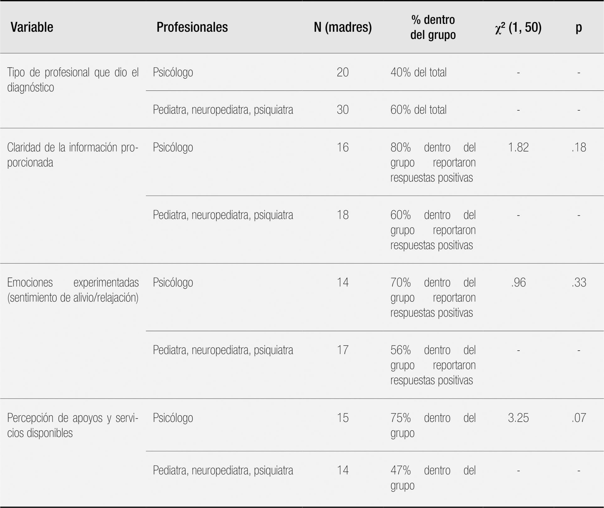 El diagnóstico de autismo en niños de 0 a 6 años representa un desafío significativo para las familias. Método: Este estudio mixto, basado en el Modelo ABCX de Ajuste Familiar, analiza las experiencias de 50 madres que recibieron la primera noticia del diagnóstico. Se emplearon entrevistas estructuradas y semiestructuradas para recoger datos sobre emociones, estrategias de afrontamiento y percepción de recursos. Resultados: Los resultados indican que las madres de menores diagnosticados con TEA por psicólogos reportaron mayor claridad en la información, un alivio emocional significativo y mejor percepción de los apoyos disponibles en comparación con aquellas diagnosticadas por otros profesionales. Estas diferencias subrayan la importancia de una comunicación clara y empática en la gestión del diagnóstico. Conclusión: la calidad de la comunicación y el apoyo emocional durante el diagnóstico son factores determinantes para facilitar una adaptación más positiva, resaltando la necesidad de un enfoque integral en la intervención temprana para el autismo.